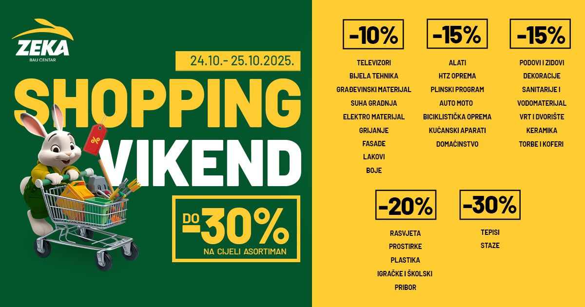 Cijeli članakPopusti do 30% u svim Zeka baucentrima i na zeka.ba – sa dostavom na adresu 24. i 25. oktobra