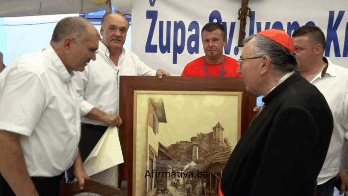 -Ovo su prostori na kojima su se materijalno i duhovno dopunjavali u cilji izgradnje kvalitetnih medjunacionalnih odnosa. Rat je bio najbolji svjedok, najbolji kantar šta se ovdje dešavalo. Nije bilo sukoba uopšte izmedju Hrvata i Bošnjaka-kazao je Izudin Ahmetlić koji je u ime poslovne zajednice Tešnja kardinalu Puljiću uručio umjetničku sliku.